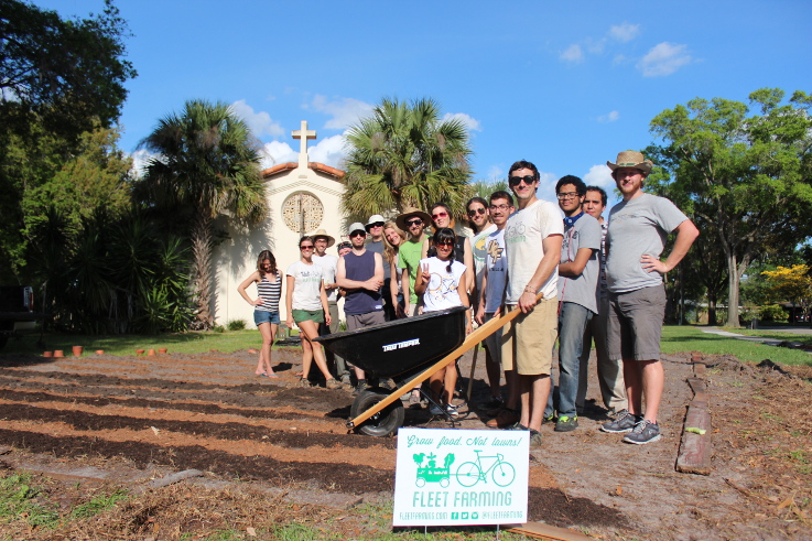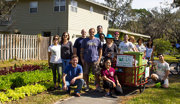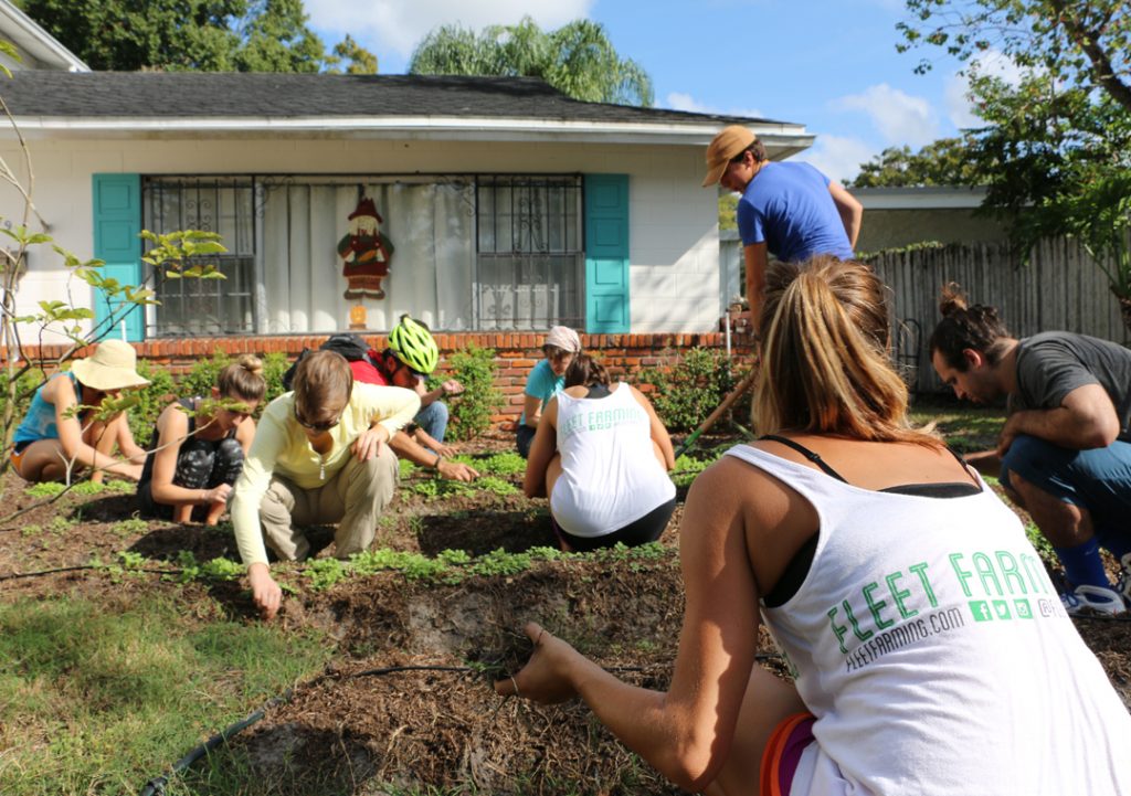 Fleet Farming began with a simple idea presented at The IDEAS Hive in December 2013 to “grow food and not lawns”. John Rife, a local entrepreneur and owner of East End Market, stood before a gathering of community members at this monthly design-thinking workshop and proposed a radical concept: what if Orlando could transform wasteful manicured lawns into productive farmland?